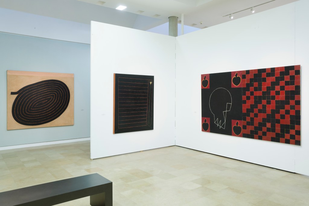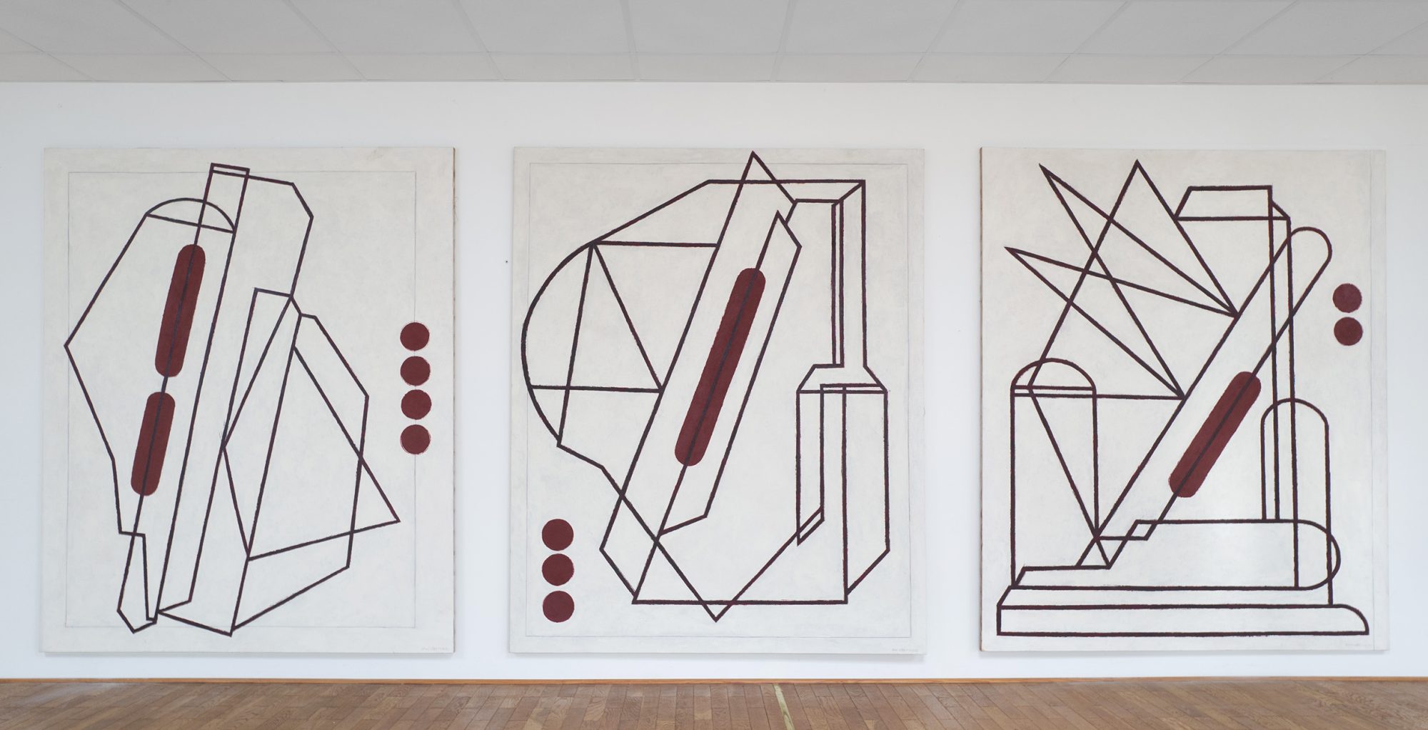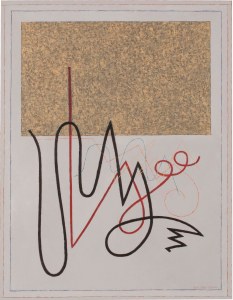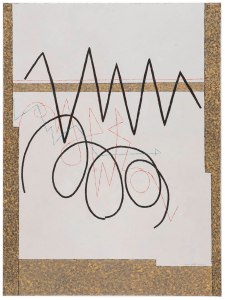 Parfois, un trait fait courir son fil et traverse en partie le tableau. On dirait à la fois qu’il le trame et le découvre, le structure et s’y égare. Une sorte de zigzag, de suivez-moi-jeune-hommeadressé autant à l’œuvre qu’au regardeur, pour fixer leur évasion.