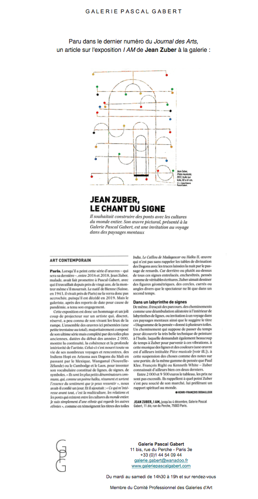 Il y a deux Jean Zuber – et certainement beaucoup plus tant un seul corps peut facilement contenir une multitude – . D’une part le peintre classique, constructeur de tableaux structurés, de l’autre celui d’avant tout classicisme : le primitif, revivant l’invention des premiers signes, des premières couleurs, un humain dans l’étonnement de ses sensations. Ces deux- là, et les autres, auront bien sûr toujours tenté de concilier leur tension et d’apparaître dans chaque tableau, sans qu’aucun ne doive concéder trop de pouvoir à l’autre.